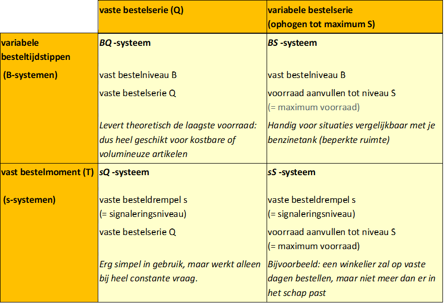 Tabel 1 Systemen voor stochastisch voorraadbeheer