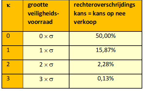 tabel 4: veiligheidsvoorraad en kans op nee-verkoop