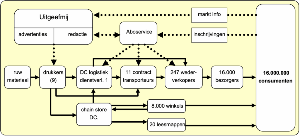 figuur 20 De logistieke keten van een tijdschriftenuitgever: veel schakels in de keten, veel relaties
