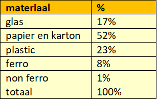 De meest gebruikte verpakkingsmaterialen zijn papier en karton (zie tabel 1).