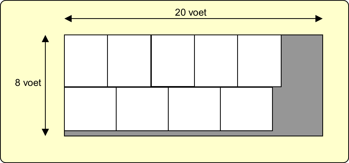 Met een speciale manier van stuwen is het mogelijk om tien pallets in de container te plaatsen. Door de pallets om en om (pin-wheel) te plaatsen (zie figuur 12.