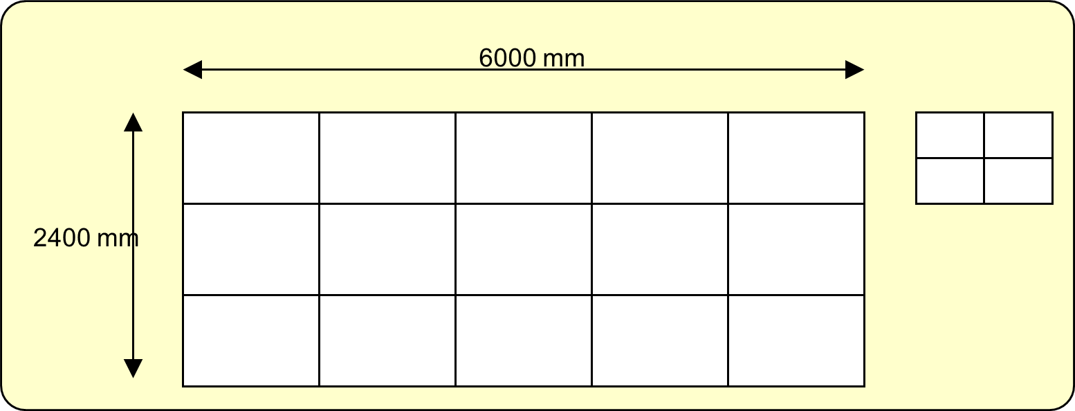 De modulen zijn (abstracte) oppervlakte-eenheden en geen fysieke grootheden, zoals een doos, pallet en container. De Europallet, met afmetingen 800 ´ 1200 mm, is goed te gebruiken in het modulaire stelsel, maar is, volgens de definitie, niet modulair. De relatie tussen palletafmeting en verpakkingsmoduul enerzijds en tussen palletafmeting en vervoersmoduul anderzijds hebben we weergegeven in figuur 16 Bij beide pallettypen wordt de ruimte in de vervoersmoduul volledig benut, dus is er een perfecte maatafstemming.