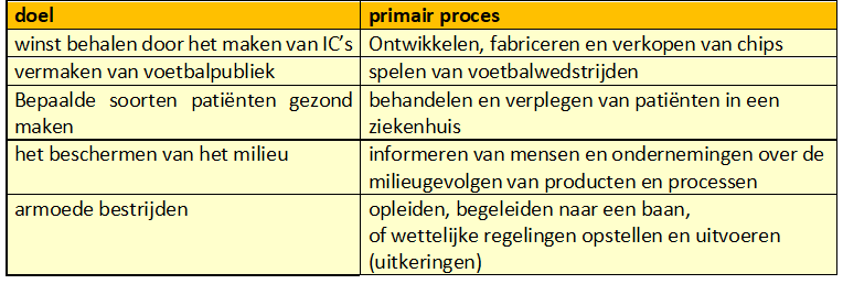 Tabel 1  voorbeelden van doelen en primaire processen om deze te bereiken