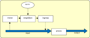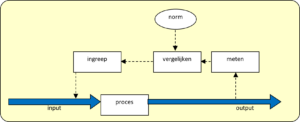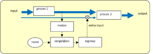 Bij terugkoppeling of feedback meet je het resultaat, de output en stel je zo nodig de in­put bij. Je ingreep wordt be­paald door afwijkingen in de output. Zie figuur 3.