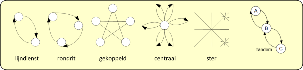Verplaatsingsnetwerken zijn door knooppunten met elkaar verbonden en het transport vindt plaats met vaste, op elkaar afgestemde dienstregelingen. De gerealiseerde doorlooptijd is afhankelijk van (een combinatie van) factoren als: de gekozen modaliteit, de route, de frequenties en toegevoegde-waarde-activiteiten op de knooppunten. In collectie- en distributienetwerken is er altijd sprake van meerdere zendingen, die bestaan uit één of meer laadeenheden. De translatie kan worden ingedeeld in verschillende typen, zoals aangegeven in figuur 2.