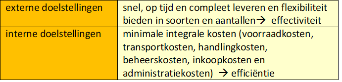 Tabel 1 Voorbeelden van interne en externe logistieke doelstellingen