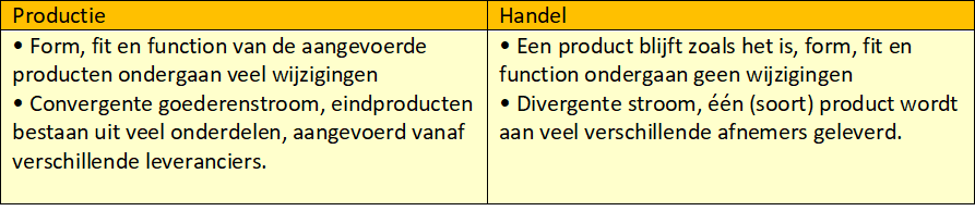 Een voorbeeld van indeling naar functie in de supply chain: we zetten handelsbedrijven tegenover productiebedrijven.