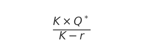 Om te berekenen hoeveel je moet kopen, kun je gebruik maken van onderstaande formule. Je moet dan wel eerst de EOQ (Q*) berekenen voor de situatie zonder korting.
