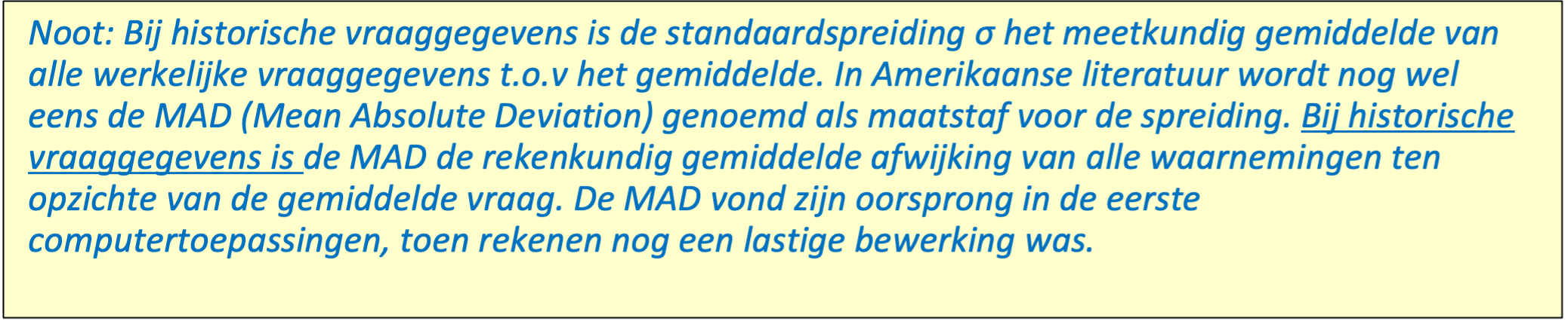 Voor het berekenen van de veiligheidsvoorraad is het nodig om een maatstaf te hanteren voor de variatie in de vraag. Een daarvoor geschikte maatstaf is de standaardspreiding (standaard deviatie), meestal weergegeven met de griekse (kleine) letter sigma: σ.