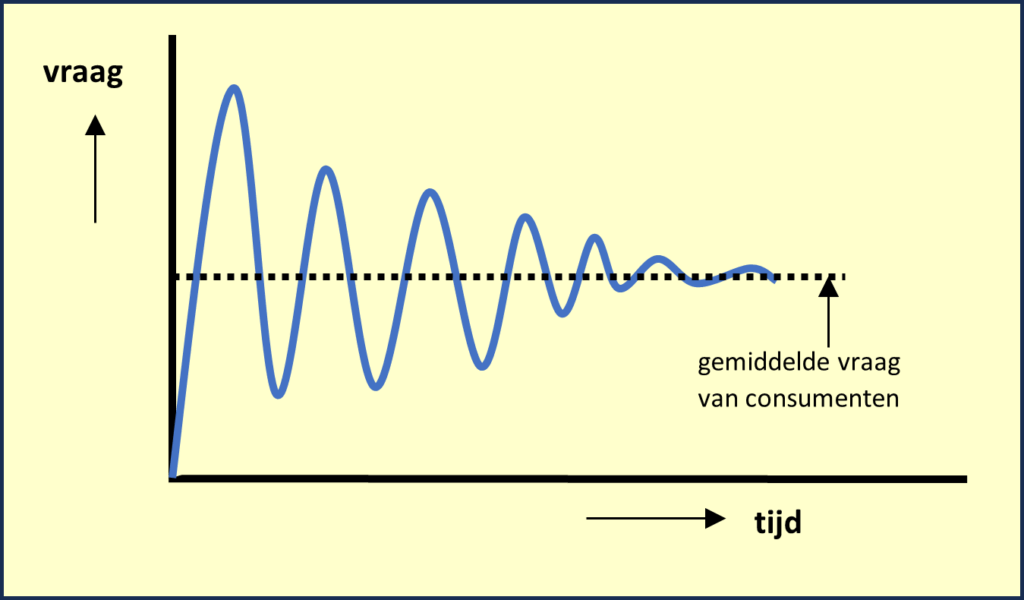 Als in deze keten ieder voorraadpunt afzonderlijk zou proberen de voorraadhoogte te beheersen, dan krijgen we onherroepelijk te maken met het keteneffect of bullwhip-effect. Kleine schommelingen in de vraag van klanten leiden tot slingeringen in de voorraden, slingeringen die stroomopwaarts steeds sterker worden. Zie Module 3 voor een goede uitleg van de oorzaken van het keteneffect, hier volstaan we met een korte samenvatting.