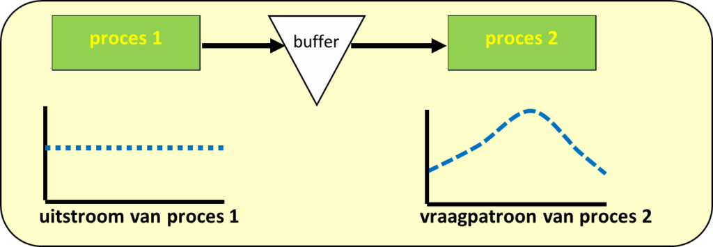 figuur 1: door een buffer worden processen met afwijkende productie- of vraagpatronen ontkoppeld